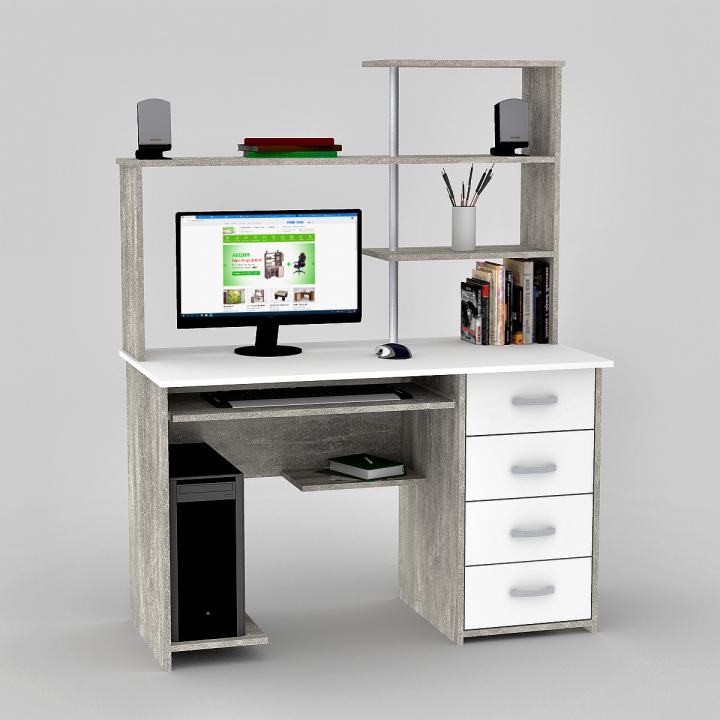 Компьютерный стол - LED 33 (Нимфея Альба/Бетон)