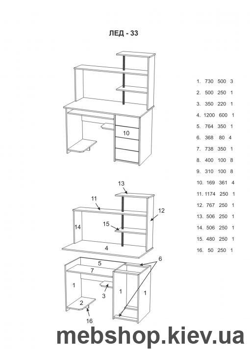 Материалы изделия: ламинированная ДСП «Swiss Krono» толщина 16 мм, экологическая безопасность класс Е1.