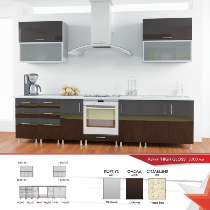 Кухня FLASHNIKA HIGH GLOSS 4 (3000мм x 600мм x 2100мм)