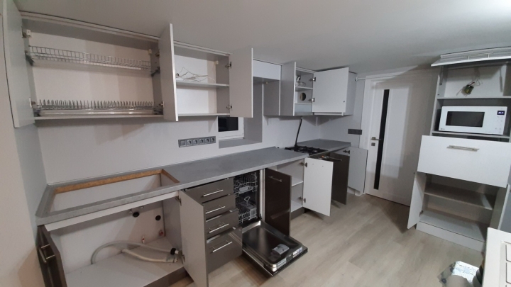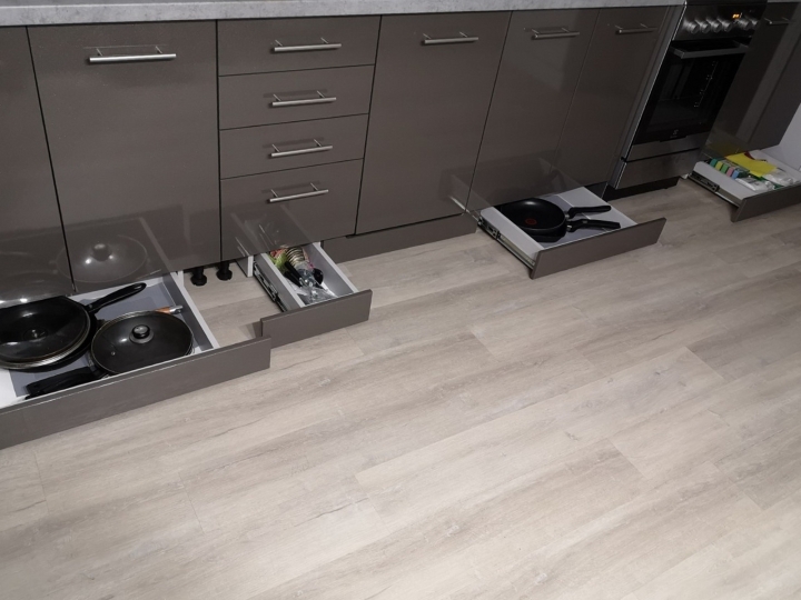 Матеріали: корпус - ламінована ДСП «Swiss Krono» 16 мм; Фасади - МДФ. Крайка - протиударна, ПВХ, товщиною 0,5 мм. Фурнітура - "DC", "Linken".