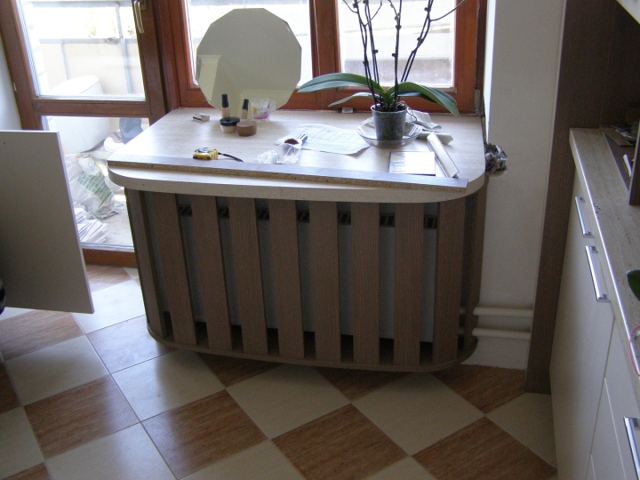 Матеріали - ламінована ДСП «Swiss Krono» 16 мм. Крайка - протиударна, ПВХ, товщиною 0,5 мм. Фурнітура - "DC", "Linken".