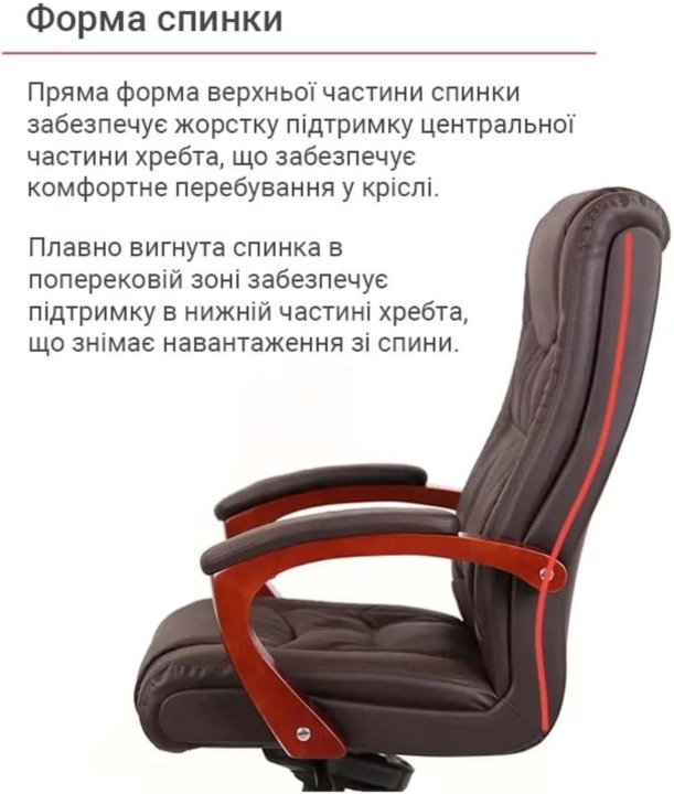 Для пошива чехла на рабочих поверхностях используется натуральная кожа коровы, а именно на передней части спинки, сиденье и подлокотниках.На нерабочих поверхностях - экокожа, а именно искусственный материал на тканевой подкладке на боковых вставках, задней части спинки.Механизмы. Вдобавок комфортному сиденью кресло Артур оснащено механизмом мультиблок, с помощью которого вы сможете полноценно наслаждаться временем, проведенным в этом кресле, включив режим качания повышенной комфортности. Этот механизм также дает возможность выбрать и зафиксировать желаемое положение сиденья со спинкой и изменять его по своему усмотрению. Мультиблок легко настраивается под пользовательский вес с помощью декоративного винта под сиденьем, что позволяет ему отлично выполнять свою работу. Газлифт поможет вам отрегулировать высоту кресла под ваши предпочтения.Подлокотники. Г-образная форма и размер подлокотников подобраны таким образом, чтобы рукам было комфортно на них опираться. Натуральное тонированное дерево создает ощущение домашнего уюта и теплоты. Мягкие накладки защищают руки от контакта с холодной и жесткой поверхностью и дарят дополнительный комфорт. Красота дерева долгие годы будет радовать вас благодаря стойкому лаковому покрытию. Высота подлокотников в нижнем положении подобрана так, что кресло легко заходило под стандартный рабочий стол высотой от 75 см. Это позволяет значительно освободить окружающее пространство, в то время когда кресло не используется по назначению.Крестовина. Крестовина изготовлена из металла с деревянными накладками.