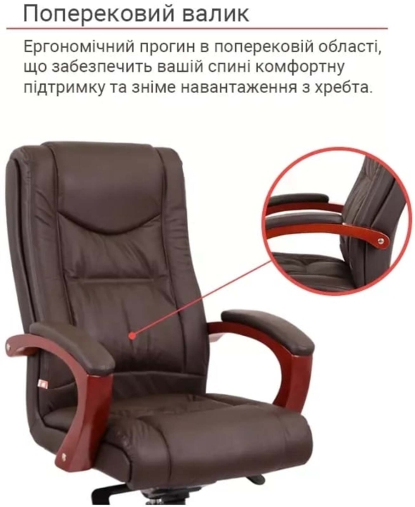Кресло АКЛАС Артур EX MB (Кожа LC-K Dark brown) – сочетание высокого качества и тонкого чувства стиля с функциональными возможностями. Эта солидная и практичная модель станет отличным украшением для Вашего кабинета за счет элегантного дизайна и гармоничного сочетания разных элементов. Такое кресло подчеркнет не только высокий статус своего владельца, но и хороший вкус. Артур – это классика, идеально сочетающаяся с качеством и современными технологиями. Все детали тщательно подобраны и порадуют вас как отдельно, так и единым ансамблем. Такое кресло несомненно украсит ваше рабочее пространство и станет надежным спутником на пути достижения высоких целей во всех ваших делах и начинаниях.Дизайн. Просто, но в то же время изысканно – вот как можно охарактеризовать это кресло. Силуэт достаточно лаконичен, но благодаря удачному сочетанию кожи и дерева он выглядит много. Сидения и спинка украшены горизонтальными перетяжками прошивки, которые не только украшают, но и формируют удобное посадочное место с массирующим эффектом. Деревянные детали красивого оттенка каштана гармонично смотрятся на фоне классического цвета обивки и подчеркивают красоту кресла.Обивка. Приятный на ощупь обивочный материал данной модели из натуральной кожи класса Lux поможет Вам наслаждаться временем проведенным за работой в этом кресле, ведь этот природный материал не нуждается в представлении – прочный, надежный, гипоаллергенный. Данная обивка уже сама по себе является признаком определенного вкуса и статуса. Для большего комфорта поверхность материала перфорирована, что улучшает ее воздухопроницаемость. Этот износостойкий материал и предельно прост в уходе, что обеспечит креслу безупречный внешний вид на долгие годы. Оригинальная просрочка формирует неповторимый внешний силуэт с привлекательными формами, что стало возможным благодаря эластичности обивочного материала.