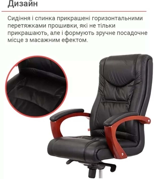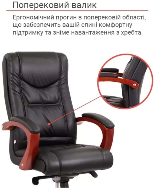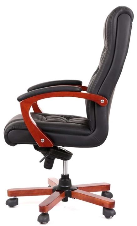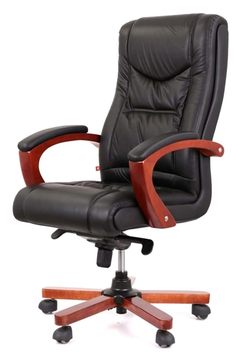 Кресло АКЛАС Артур EX MB (Кожа LC-A Black) – сочетание высокого качества и тонкого чувства стиля с функциональными возможностями. Эта солидная и практичная модель станет отличным украшением для Вашего кабинета за счет элегантного дизайна и гармоничного сочетания разных элементов. Такое кресло подчеркнет не только высокий статус своего владельца, но и хороший вкус. Артур – это классика, идеально сочетающаяся с качеством и современными технологиями. Все детали тщательно подобраны и порадуют вас как отдельно, так и единым ансамблем. Такое кресло несомненно украсит ваше рабочее пространство и станет надежным спутником на пути достижения высоких целей во всех ваших делах и начинаниях.Дизайн. Просто, но в то же время изысканно – вот как можно охарактеризовать это кресло. Силуэт достаточно лаконичен, но благодаря удачному сочетанию кожи и дерева он выглядит много. Сидения и спинка украшены горизонтальными перетяжками прошивки, которые не только украшают, но и формируют удобное посадочное место с массирующим эффектом. Деревянные детали красивого оттенка каштана гармонично смотрятся на фоне классического цвета обивки и подчеркивают красоту кресла.Обивка. Приятный на ощупь обивочный материал данной модели из натуральной кожи класса Lux поможет Вам наслаждаться временем проведенным за работой в этом кресле, ведь этот природный материал не нуждается в представлении – прочный, надежный, гипоаллергенный. Данная обивка уже сама по себе является признаком определенного вкуса и статуса. Для большего комфорта поверхность материала перфорирована, что улучшает ее воздухопроницаемость. Этот износостойкий материал и предельно прост в уходе, что обеспечит креслу безупречный внешний вид на долгие годы. Оригинальная просрочка формирует неповторимый внешний силуэт с привлекательными формами, что стало возможным благодаря эластичности обивочного материала.