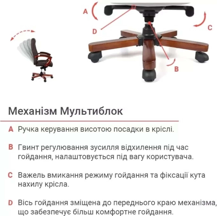 Механизмы. Кресло Атлант укомплектовано механизмом мультиблока, с которым вы сможете полноценно насладиться временем, проведенным в этом кресле. Режим качания повышенной комфортности позволит расслабиться. Рабочее положение можно подобрать и зафиксировать под наиболее удобным для себя углом сиденья и спинки. С помощью декоративного винта под сиденьем мультиблок просто регулируется в соответствии с пользовательским весом, что позволяет ему правильно выполнять свою работу. Газлифтом легко можно настроить высоту кресла с учетом своего роста, чтобы устроиться в нем максимально комфортно.