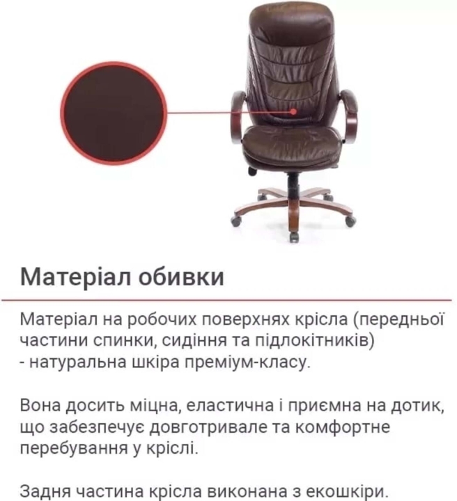 Для пошива чехла на рабочих поверхностях используется натуральная кожа коровы, а именно на передней части спинки, сиденье и подлокотниках.На нерабочих поверхностях - экокожа, а именно искусственный материал на тканевой подкладке на боковых вставках, задней части спинки.