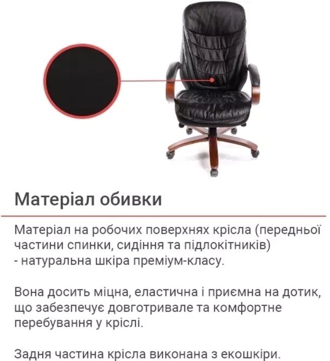 Для пошива чехла на рабочих поверхностях используется натуральная кожа коровы, а именно на передней части спинки, сиденье и подлокотниках.На нерабочих поверхностях - экокожа, а именно искусственный материал на тканевой подкладке на боковых вставках, задней части спинки.