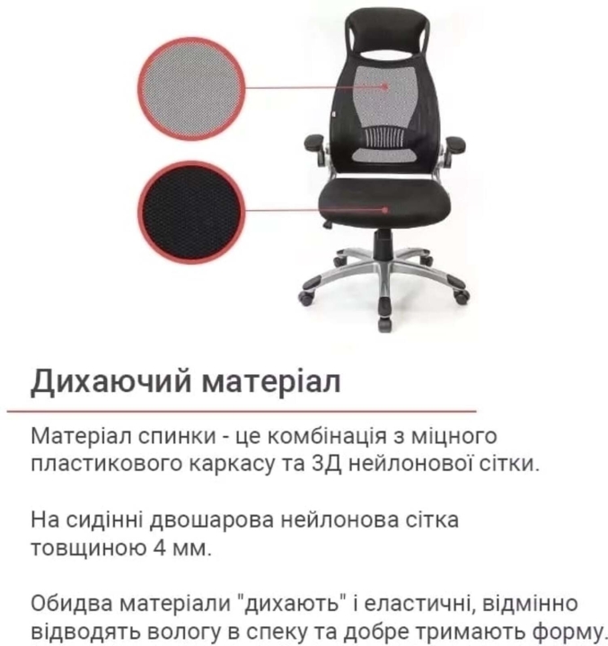 Обивка. В качестве основной обивки спинки в кресле использована нейлоновая сетка, придающая креслу легкость, а в сиденье использована мебельная сотовая ткань. Оба эти материала "дышащие" и эластичные, прекрасно отводят влагу в жаркую погоду и отлично держат форму, а это просто незаменимые качества для материала офисного кресла, которое должно выдерживать большие нагрузки в повседневной эксплуатации.