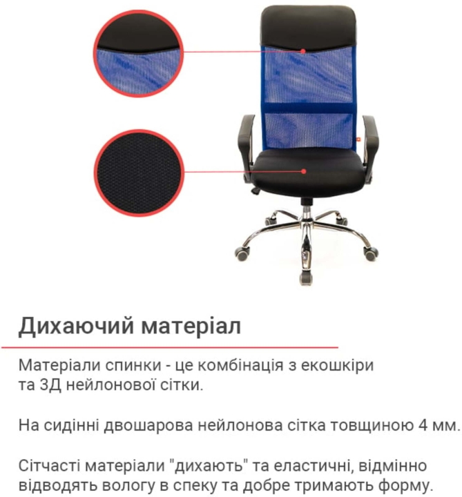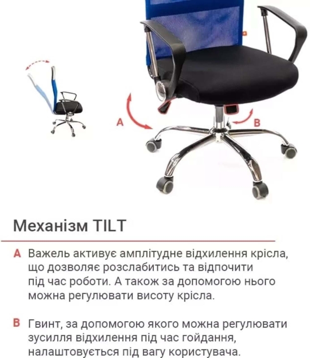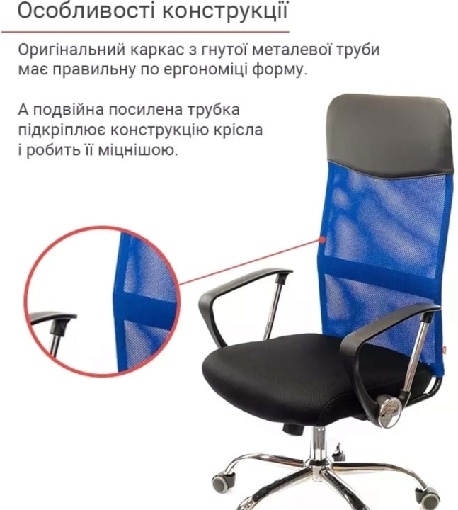 Кресло АКЛАС Гилмор СН TILT (Синий/Черный) – удачное сочетание инновационных материалов, современных механизмов и эргономической формы. Одна из особенностей модели – особое сочетание обивок спинки из нейлоновой сетки и экокожи. Оригинальный каркас из металлической гнутой трубы имеет правильную по эргономике форму. Дополнительным козырем данного кресла есть двойная усиленная трубка спинки. Таким образом, производитель устранил «слабое» место излома спинки в конструкции, тем самым сделал кресло более крепким.