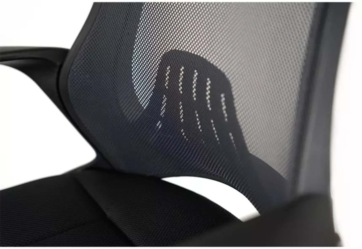 Одна з особливостей моделі - особливе поєднання оббивок спинки з нейлонової сітки і стільникової тканини. Крісло виглядає стильно. Оригінальний каркас спинки, в основі якого біла пластикова рама, має ергономічну форму з бічною підтримкою. Це допомагає створити приємний підтримуючий ефект спини з боків і в області попереку. Таке крісло відмінно доповнить інтер'єр сучасного офісу, затишне домашнє робоче місце чи кімнату підлітка.