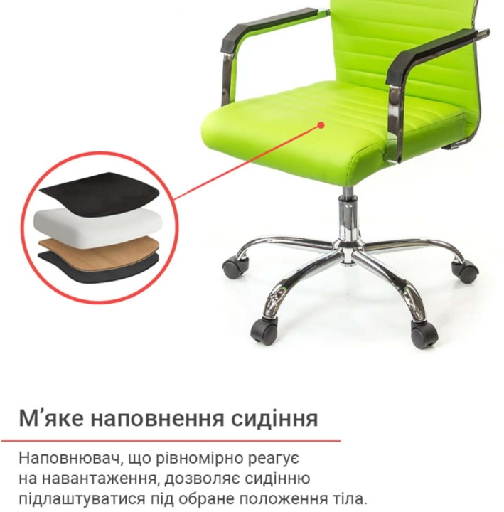 Кресло АКЛАС Кап FX СН TILT (PU Lime green) - новая модель из полюбившейся линейки кресел Кап. Легко узнаваемый минималистический дизайн, практичность и необычайная комфортность - все это о кресле Кап FX. Эта стильная модель сочетает в себе урбанистический внешний вид, правильную эргономику, высококачественные материалы и современные механизмы. Красивая обивка и блестящий металл - беспроигрышное сочетание, которое уместно будет смотреться в любом современном интерьере. В классический интерьер с минимумом деревянных деталей кресло также подойдет благодаря тому, что оно достаточно элегантное и изящное. Основная особенность данного кресла - очень мягкое сидение, благодаря которому посадка стала еще более комфортной.