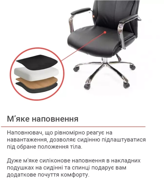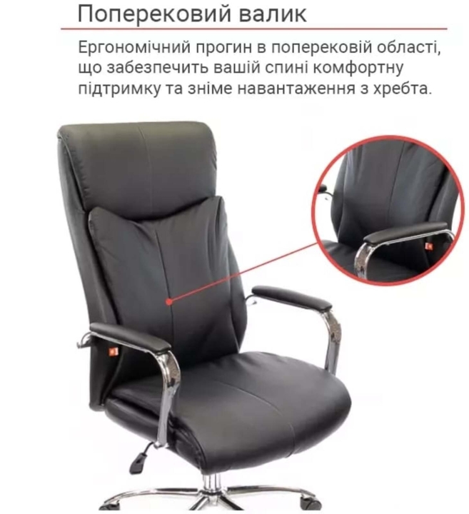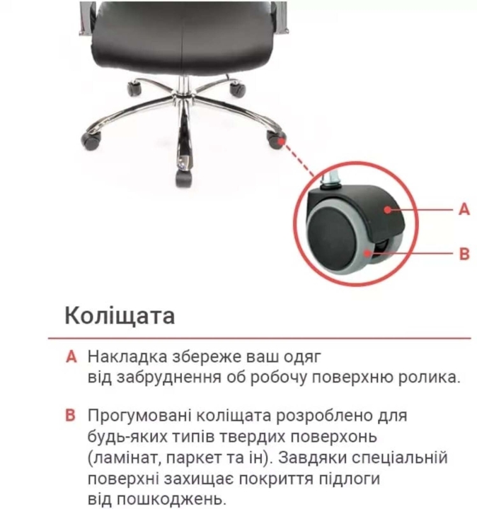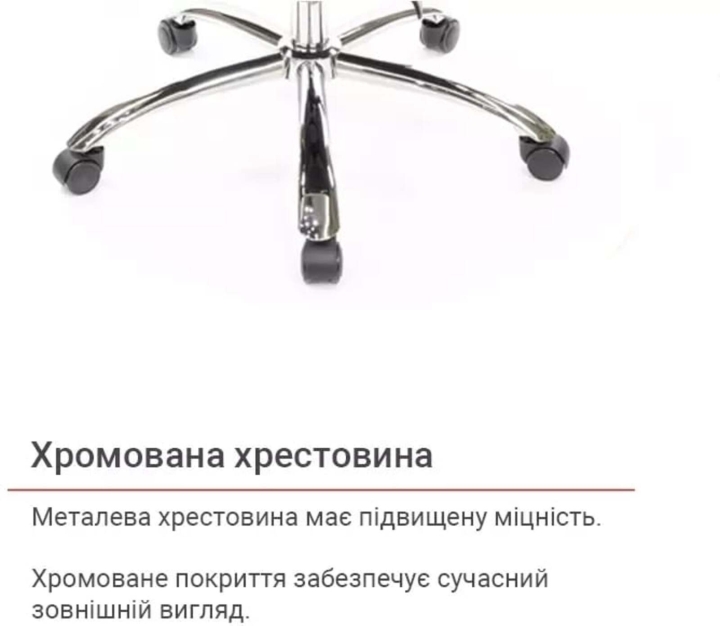 Крестовина. Прочная металлическая крестовина с хромированным покрытием рассчитана на большие нагрузки, привлекательно выглядит и отлично противостоит механическим повреждениям. Блестящее хромированное покрытие металла не только красивое, но и очень прочное. Стандартная комплектация роликовыми опорами для мягких напольных покрытий может быть изменена по желанию клиента. Для данной модели отлично подойдут ролики с хромированными накладками, которые гармонично сочетаются с металлическими деталями и дополняют общий образ модели.