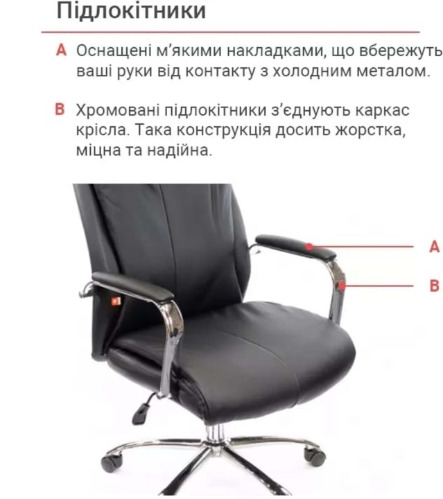 Подлокотники. Эргономичные прочные металлические подлокотники дополнены мягкими накладками, что не только прекрасно дополняет внешнюю красоту кресла, но и дарит вашим рукам чувство максимального комфорта.