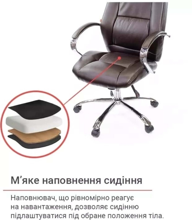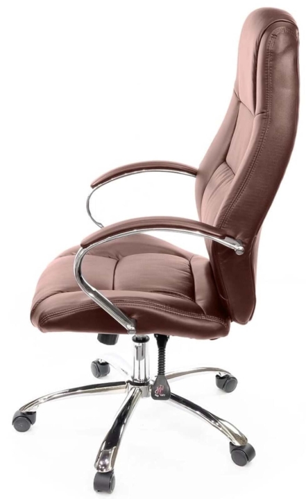 Дизайн. Элегантная классика - вот как можно охарактеризовать это кресло. Силуэт достаточно сдержанный, но благодаря удачному сочетанию линий прошивки, кожи и хромированного металла модель выглядит роскошно и уютно. Сидение и спинка украшены перетяжками прошивки, которые вместе с толстым слоем наполнителя формируют удобное посадочное место. Блестящие металлические детали гармонично обрамляют обивку и только подчеркивают красоту кресла. Светлая экокожа отлично дополнит интерьер женского кабинета или кабинет со светлым или черным деревом.