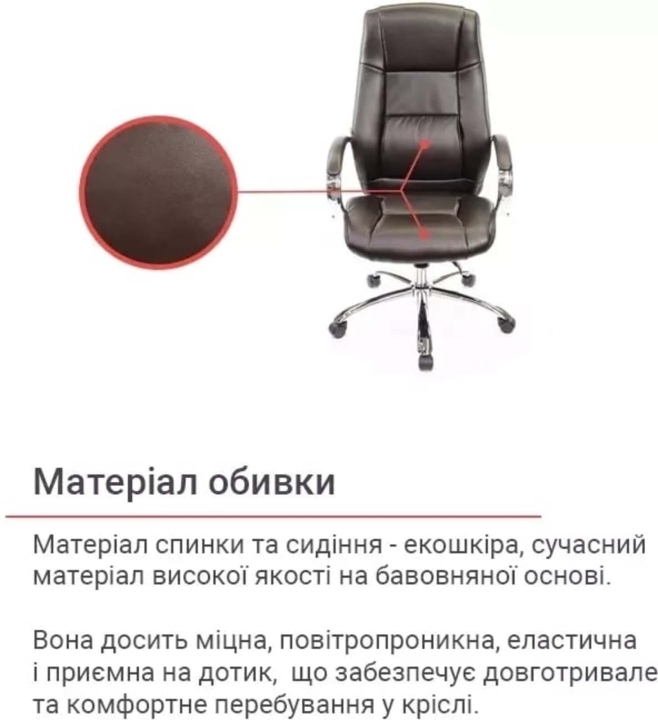 Обивка. Как и подобает солидному статусу модели, Оран изготовлена из качественной экокожи. Этот материал практически не уступает по своим качествам натуральной коже, а цена - это его основное преимущество Он имеет натуральную основу и отлично зарекомендовал себя за годы использования в офисе. Экокожа прочная, эластичная и проста в уходе.