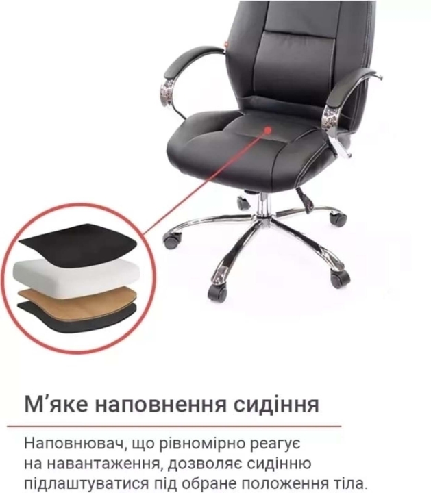 Дизайн. Элегантная классика - вот как можно охарактеризовать это кресло. Силуэт достаточно сдержанный, но благодаря удачному сочетанию линий прошивки, кожи и хромированного металла модель выглядит роскошно и уютно. Сидение и спинка украшены перетяжками прошивки, которые вместе с толстым слоем наполнителя формируют удобное посадочное место. Блестящие металлические детали гармонично обрамляют обивку и только подчеркивают красоту кресла. Светлая экокожа отлично дополнит интерьер женского кабинета или кабинет со светлым или черным деревом.