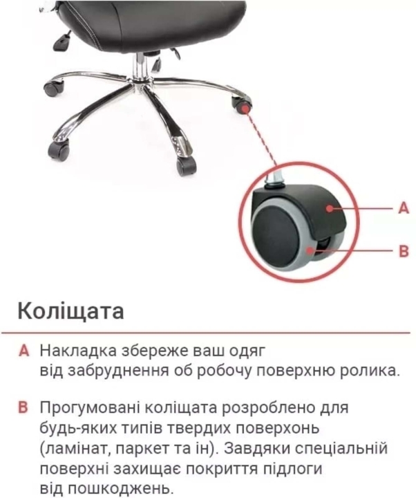 Крестовина. Крестовина у данного кресла из прочного хромированного металла. Благодаря этому ему обеспечена надёжность и устойчивость. При этом оно легко передвигается с помощью роликов. Хромированное покрытие очень стойкое, оно отлично защищает поверхность от мелких царапин и повреждений. Такая крестовина со временем не потеряет свой первоначальный внешний вид и будет долго радовать вас своим холодным блеском. Универсальные прорезиненные ролики, по-умолчанию установленные в кресле, подойдут для любого типа напольного покрытия. Также для данной модели подойдут ролики с хромированными накладками в стилистике кресла.