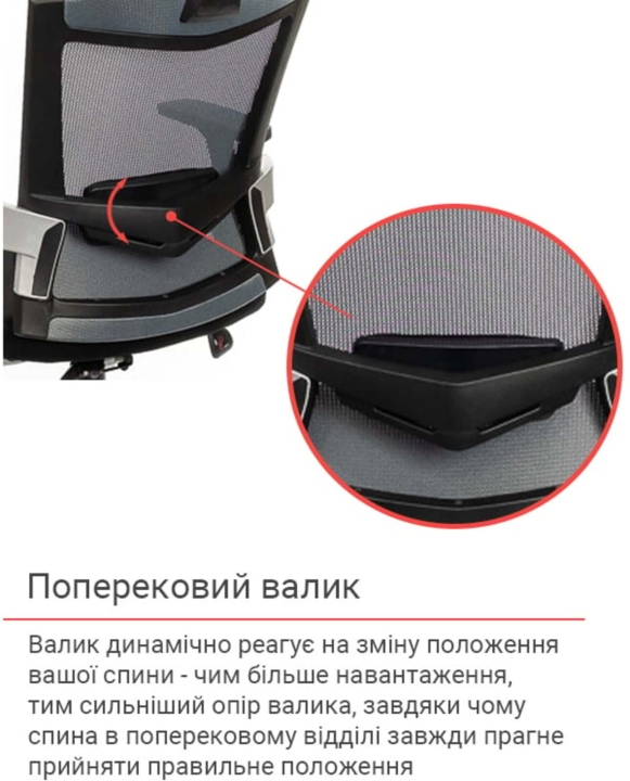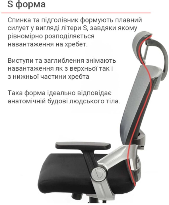 Дизайн. Відмінною рисою цієї моделі є дуже популярна сьогодні сітчаста оббивка та помітна зовнішність. Крісло виглядає так, немов зійшло з екрану фантастичного фільму про високотехнологічне майбутнє. Чіткі лінії силуету, мінімум декору і легкість - нічого зайвого, тільки максимум свободи та комфорту. Оригінальна спинка трапецієподібної форми має правильну ергономіку: невеликий поперековий вигин і легка бічна підтримка забезпечать комфортну опору спині. Додаткова підтримка хребта в області попереку здійснюється за рахунок м'якого валика, який кріпиться зовні, за сітчастої оббивкою.