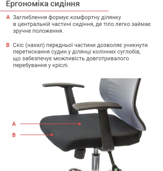 Дизайн. Дизайн крісла - урбаністичний, що відповідає сучасним віянням моди. Елегантна сітчаста спинка - це основний елемент декору даної моделі.