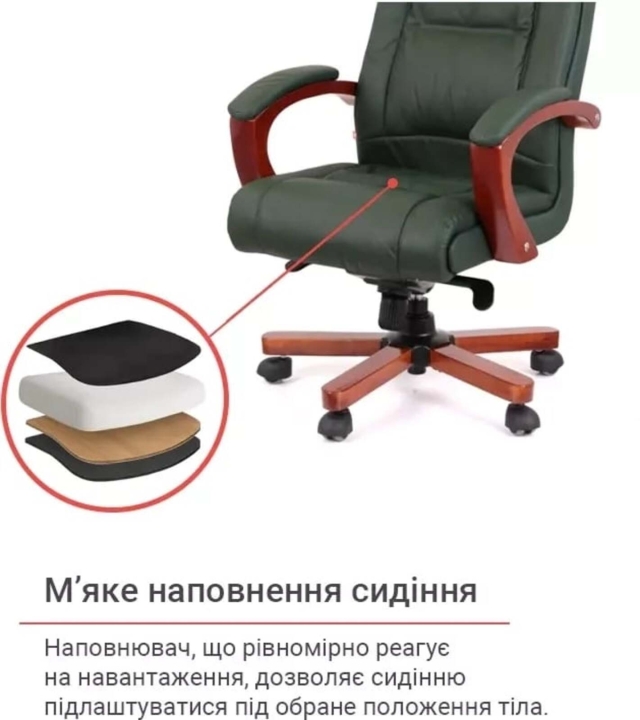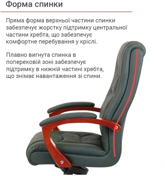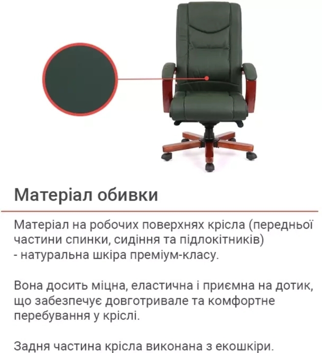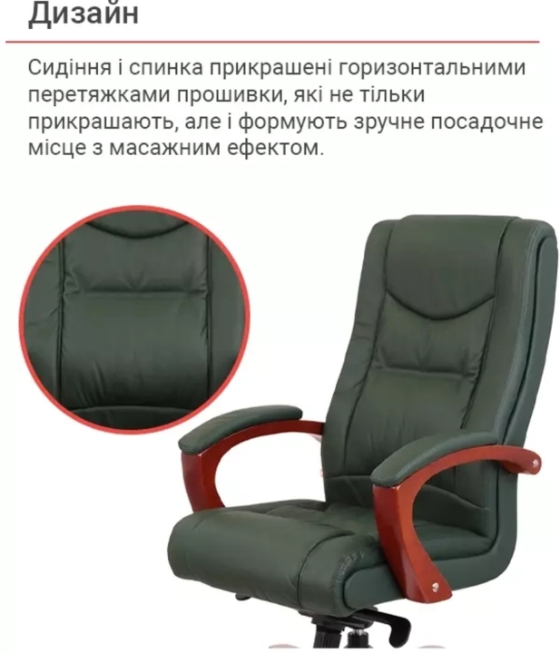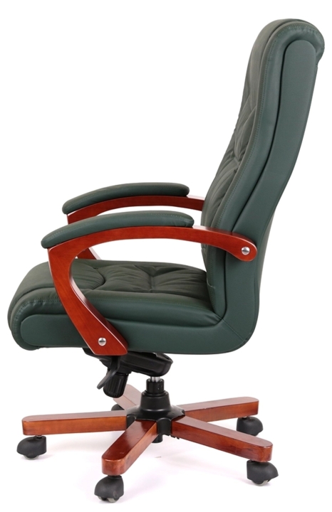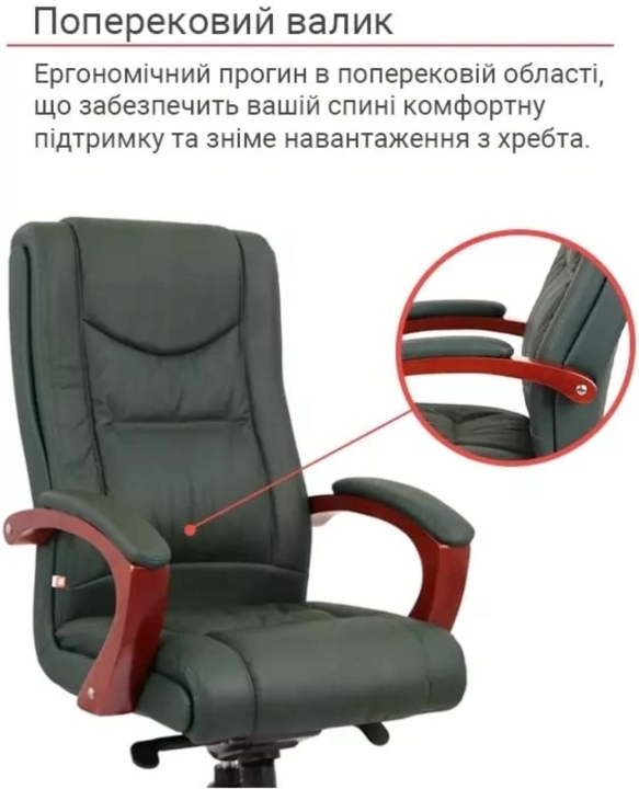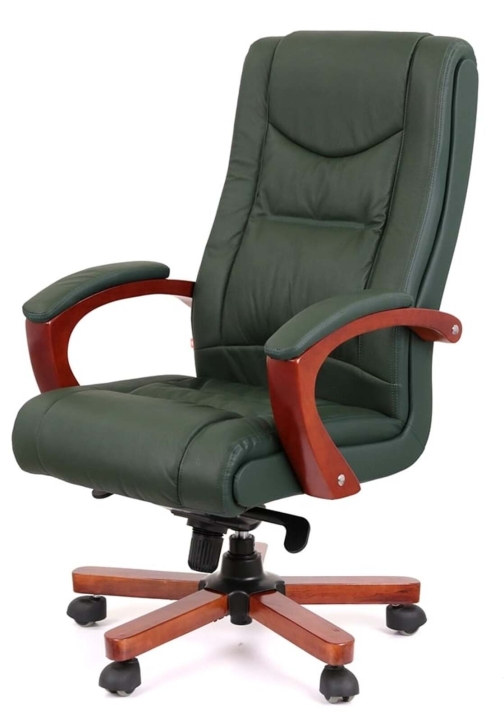 Кресло АКЛАС Артур EX MB (Кожа Lux LC Green) – сочетание высокого качества и тонкого чувства стиля с функциональными возможностями. Эта солидная и практичная модель станет отличным украшением для Вашего кабинета за счет элегантного дизайна и гармоничного сочетания разных элементов. Такое кресло подчеркнет не только высокий статус своего владельца, но и хороший вкус. Артур – это классика, идеально сочетающаяся с качеством и современными технологиями. Все детали тщательно подобраны и порадуют вас как отдельно, так и единым ансамблем. Такое кресло несомненно украсит ваше рабочее пространство и станет надежным спутником на пути достижения высоких целей во всех ваших делах и начинаниях.Дизайн. Просто, но в то же время изысканно – вот как можно охарактеризовать это кресло. Силуэт достаточно лаконичен, но благодаря удачному сочетанию кожи и дерева он выглядит много. Сидения и спинка украшены горизонтальными перетяжками прошивки, которые не только украшают, но и формируют удобное посадочное место с массирующим эффектом. Деревянные детали красивого оттенка каштана гармонично смотрятся на фоне классического цвета обивки и подчеркивают красоту кресла.Обивка. Приятный на ощупь обивочный материал данной модели из натуральной кожи класса Lux поможет Вам наслаждаться временем проведенным за работой в этом кресле, ведь этот природный материал не нуждается в представлении – прочный, надежный, гипоаллергенный. Данная обивка уже сама по себе является признаком определенного вкуса и статуса. Для большего комфорта поверхность материала перфорирована, что улучшает ее воздухопроницаемость. Этот износостойкий материал и предельно прост в уходе, что обеспечит креслу безупречный внешний вид на долгие годы. Оригинальная просрочка формирует неповторимый внешний силуэт с привлекательными формами, что стало возможным благодаря эластичности обивочного материала.