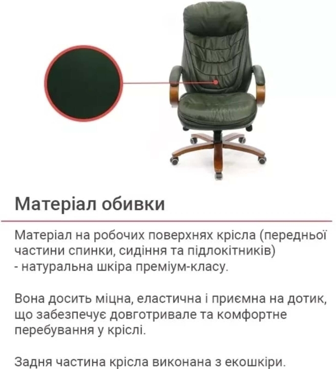 Крісло АКЛАС Валенсія Soft EX MB (Шкіра Lux LC Green/PU Зелений) - абсолютно нова модель вже популярних крісел Валенсія, яка стане відмінним доповненням будь-якого робочого місця. Завдяки своїй розкоші, стилю, комфорту і презентабельності, воно буде гармонійно поєднуватися як із класичним інтер'єром, в якому переважають меблі під дерево, так і в просторому сучасному офісі, виконаному в стилі модерн. Крісло відповідає всім основним принципам ергономіки, що дозволить завжди бути в гарному настрої і тонусі. Втома, болі в спині, затерпла шия - про це все ви забудете з даними кріслом. На думку наших клієнтів - ця модель, одна з найбільш вдалих з серії Валенсія. Лаконічний елегантний оригінальний силует в поєднанні зі стильним дизайном, бездоганна ергономіка, високотехнологічні компоненти і матеріали - ось складові успіху крісла. Дизайн. Модель поєднує в собі вишуканий, добре продуманий дизайн з високою якістю. Рельєфна ергономічна спинка, яскраво виражений поперековий валик, інтегрований підголовник, зона грудного відділу і специфічної форми сидіння створюють максимальний рівень комфорту. Дана модель відрізняється збільшеною висотою спинки і наявністю потрійної подушки на сидінні і спинці, що робить її привабливою і зручною для людей високого та вище середнього зросту, а також для любителів дуже м'яких і комфортних крісел. Оббивка. Валенсія Soft, як і годиться представницькому типу крісла для керівника, має гідне вбрання з натуральної шкіри. Напівматове покриття натуральної шкіри класу Lux в залежності від освітлення, переливається, і навіть трішки змінює свій відтінок. Шкіра - бездоганний високоякісний матеріал для ідеального офісного крісла, вона приємна на дотик, еластична і міцна. Для пошиття чохла на робочих поверхнях використовується натуральна шкіра корови, а саме на передній частині спинки, сидінні та підлокітниках. На неробочих поверхнях – екошкіра, а саме штучний матеріал на тканинній підкладці на бокових вставках, задній частині спинки. Механізми. Крісло обладнане надійним і сучасним помічником - мультиблоком, який має широкі функціональні можливості. Хитання з режимом підвищеної комфортності за кілька хвилин дозволяє зняти навантаження з хребта і швидко повернути робочий стан. Залишилося тільки зафіксувати вибране вами положення спинки і сидіння, відрегулювати крісло під свою вагу, і зі свіжими силами підкорювати нові вершини. Ще одним незамінним механізмом є газлифт. Він дає можливість встановити оптимальну висоту крісла під ваш зріст так, щоб відчувати себе максимально зручно. Підлокітники. Елегантний вигин дерев'яних підлокітників даної моделі з м'якими накладками з матеріалу оббивки, порадують своєю ергономічною формою, і гармонійно доповнять красу крісла. Вони допоможуть позбавити шию, хребет і руки від зайвого навантаження і подарують додатковий комфорт. Хрестовина. Для необхідної стійкості, у офісного крісла Валенсія Soft міцна металева хрестовина з роликами (для мобільності), що витримує вагу до 120 кг. Металева основа прихована під натуральним деревом, краса якого, завдяки надійному і довговічному лаковому покриттю, не один рік буде служити вам. Особливості. Крісло обладнане потрійною подушкою на сидінні та спинці, інтегрованим типом підголівника, спеціально збільшеною висотою спинки для людей високого та тро