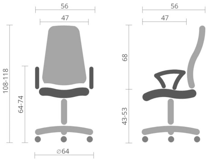 В нижньому положенні сидіння крісла підлокітники мають висоту, яка дає можливість задвинути крісло під робочий стіл для звільнення навколишнього простору.