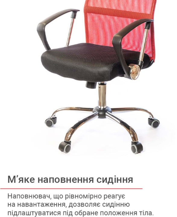 Оббивка. В якості оббивки в даній моделі використана нейлонова сітка та екошкіра. Ці матеріали відмінно зарекомендували себе при інтенсивному використанні в офісі завдяки еластичності, високій повітропроникності, міцності і зносостійкості.