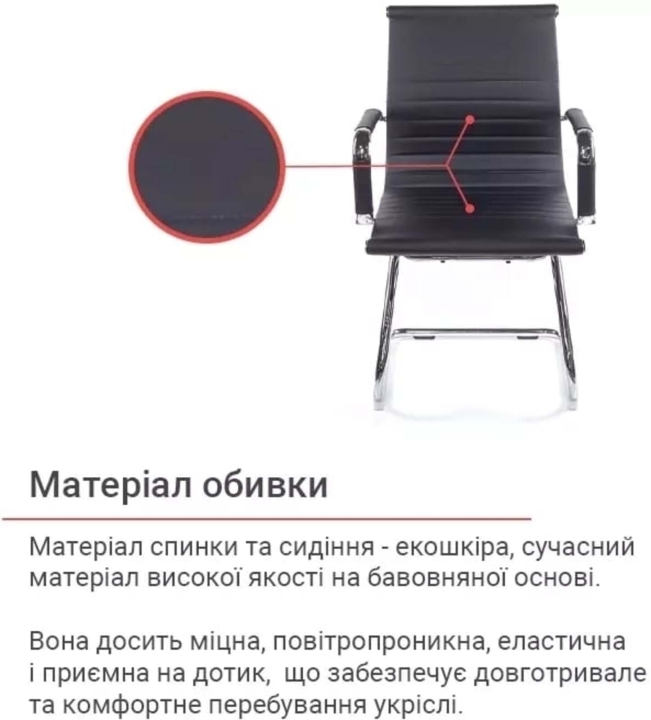 Обивка. Обивка у этого кресла – это экокожа, современный материал высокого качества на хлопковой основе. Она достаточно крепкая, воздухопроницаемая, эластичная и приятная на ощупь. По своим качествам экокожа практически не уступает натуральной коже и имеет при этом привлекательную цену. Этот материал неприхотлив в уходе и отлично справляется с интенсивной нагрузкой в условиях безумного ритма современной офисной жизни.