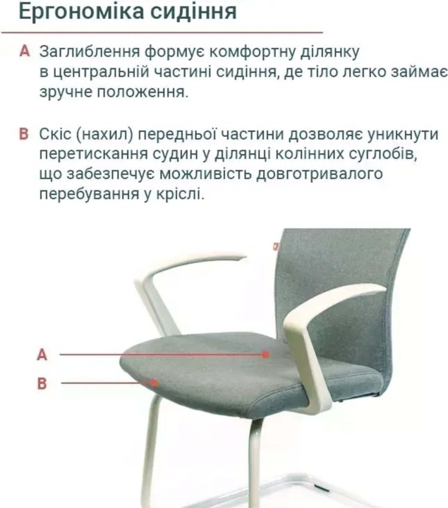 Кресло конференционное АКЛАС Арси WT CF (Серый) – стильное конференционное кресло, сочетающее в себе строгий дизайн и отличное качество. Оригинальный каркас спинки, в основе которого металлический каркас, обтянутый крепкой тканевой обивкой, создает надежную опору в поясничной области. Стильное сочетание цветной обивки и белых каркасных элементов отлично дополнит интерьер не только современного офиса, но и домашний кабинет или детскую комнату. Это кресло отлично подойдет для оснащения приемных, переговорных, конференц-залов и т.д.Дизайн. Дизайн кресла Арси CF – лаконичный, но в то же время стильный. Окрашенный в белый цвет металл основания и белые пластиковые подлокотники красиво обрамляют сиденья и создают позитивный настрой.Обивка. В качестве обивки в кресле использована крепкая котоновая ткань. Мебельная ткань – доступный по цене, и в то же время достаточно прочный и надежный обивочный материал, прошедший многолетнее испытание на прочность в современном безумном офисном ритме.Подлокотники. У данной модели стильные массивные подлокотники оригинальной формы из белого пластика. Они имеют горизонтальную рабочую поверхность, что позволяет удобно разместить руки и снять излишнюю нагрузку с плечевых суставов.Основание. Изящное основание кресла Арси CF П-образной формы и изготовлено из металла, окрашенного в белый цвет. Его конструкция достаточно крепкая и устойчивая. Благодаря порошковому нанесению, покрытие гладкое, блестящее и очень прочное. Форма основания позволяет креслу немного пружинить, создавая эффект легкого покачивания. Пластиковые заглушки в основании рамы защищают пол от царапин и повреждений.Особенности.Удобная эргономичная спинка имеет прогиб в поясничном участке, который обеспечивает вашей спине комфортную поддержку, а вам – хорошее самочувствие даже в конце насыщенного рабочего дня. В сиденье кресла используется прочная основа из гибоклееной фанеры, которая совместно с поролоновым наполнением формирует удобную посадку. Углубления в центральной части сиденья и скошенный передний край формируют правильную и удобную посадку и защиту от пережимания сосудов ног. Посадка средней жесткости поможет устроиться в кресле удобно, но в то же время будет поддерживать тело в тонусе. Стильное, практичное и комфортное – именно так можно охарактеризовать конференц-кресло Арси CF! Это классное рабочее кресло для офиса и дома. Его покупают как по отдельности, так и вместе с креслом на крестовине Арси, чтобы интерьер офиса получился в едином стиле.