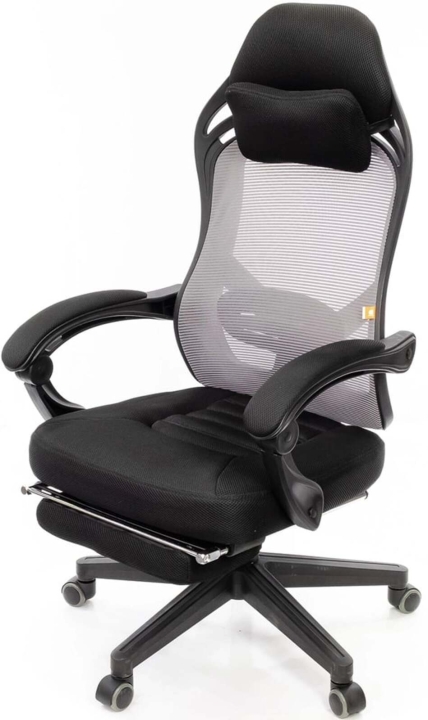 Дизайн. Крісло має стильну зовнішність, завдяки якій крісло точно не залишиться непоміченим і стане справжньою окрасою вашого будинку або офісу. Висока фігурна спинка з сітчастою вставкою в центральній частині спинки, зручна висувна підставка для ніг - всі ці деталі створюють яскравий, неповторний образ сучасного, комфортного і стильного офісного крісла.