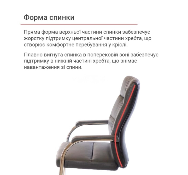 Особливості. Крісло середніх розмірів, з м'якою посадкою. Висота спинки нижче, ніж у повнорозмірної модифікації на хрестовині, але в усьому іншому крісло таке ж комфортне. Монолітна дерев'яна основа спинки має ергономічний прогин в поперековій області, що забезпечить вашій спині комфортну підтримку і зніме навантаження з хребта. Передня частина сидіння має скошений край, щоб не пережималися судини ніг. Крісло Натан CF - гідна модель за привабливою ціною.
