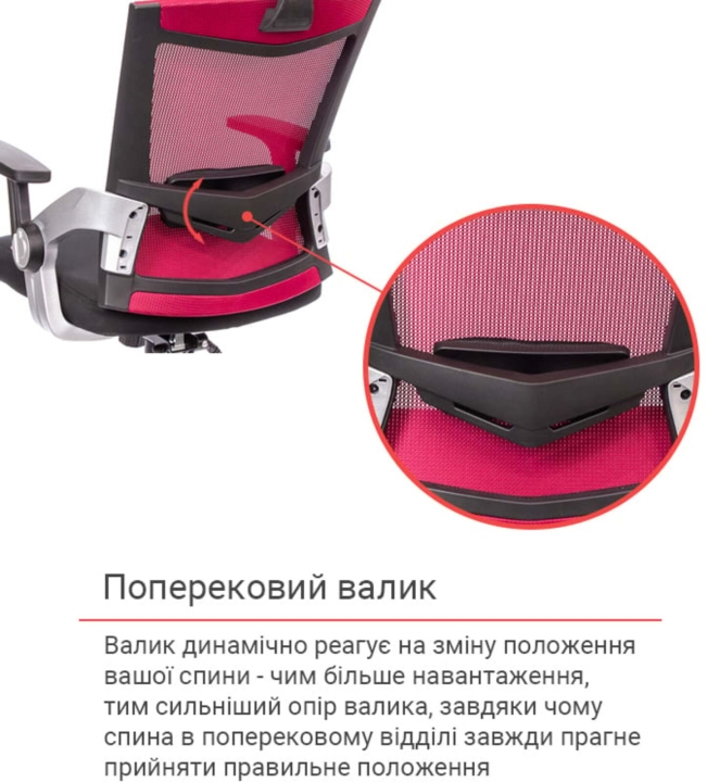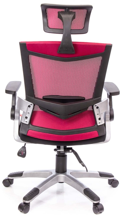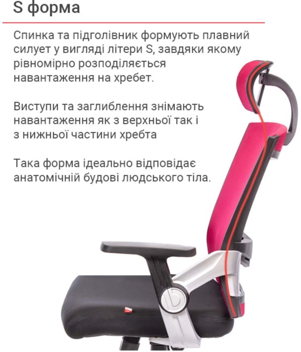 Дизайн. Відмінною рисою цієї моделі є дуже популярна сьогодні сітчаста оббивка та помітна зовнішність. Крісло виглядає так, немов зійшло з екрану фантастичного фільму про високотехнологічне майбутнє. Чіткі лінії силуету, мінімум декору і легкість - нічого зайвого, тільки максимум свободи та комфорту. Оригінальна спинка трапецієподібної форми має правильну ергономіку: невеликий поперековий вигин і легка бічна підтримка забезпечать комфортну опору спині. Додаткова підтримка хребта в області попереку здійснюється за рахунок м'якого валика, який кріпиться зовні, за сітчастої оббивкою.