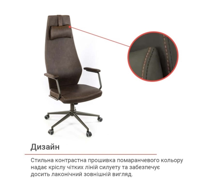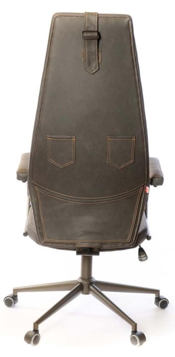 Дизайн. Зовнішній вигляд даної моделі досить лаконічний. Чіткі лінії силуету, звужена до верху спинка, мінімум декору. Крісло буде доречно виглядати як в класичній обстановці, так і в сучасному хай-тек просторі. Стриманий колір оббивки і блискучий хром завершують образ геніального у своїй простоті офісного крісла. Декоративні елементи в даній моделі дуже оригінальні. Чого варті забавні кишеньки на спинці в формі джинсових кишень, пряжка- кріплення підголівника та стильна контрастна прошивка краю сидіння - все це додає суворому силуету крісла трохи стильної грайливості.