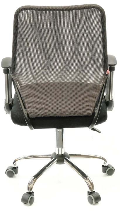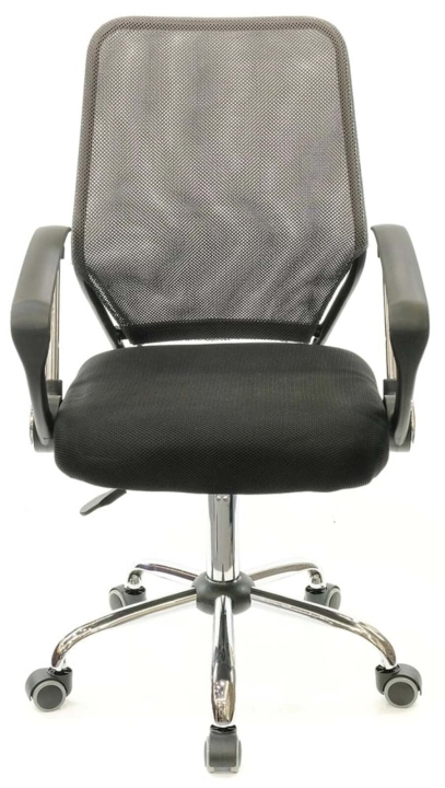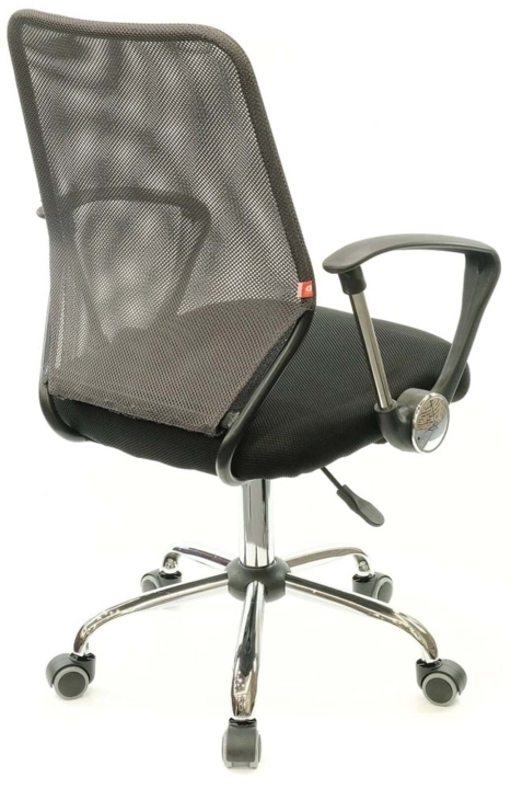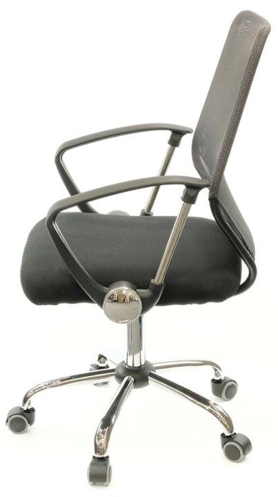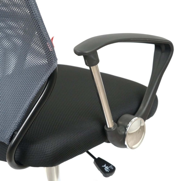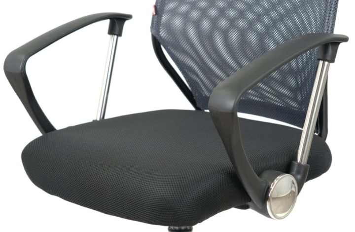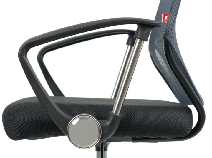 Подлокотники. У данной модели стильные комбинированные подлокотники из черного пластика и металлической трубы. Поверхность пластика текстурирована, благодаря чему руки не соскальзывают в процессе работы. Металлическая вставка гармонирует с хромированной крестовиной, создавая единственный неповторимый ансамбль. Подлокотники в нижнем положении сиденья кресла имеют высоту, которая позволяет задвинуть кресло под рабочий стол для освобождения окружающего пространства.