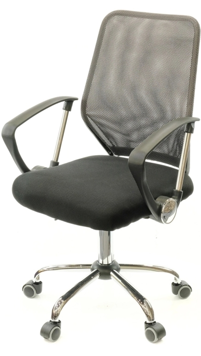 Подлокотники. У данной модели стильные комбинированные подлокотники из черного пластика и металлической трубы. Поверхность пластика текстурирована, благодаря чему руки не соскальзывают в процессе работы. Металлическая вставка гармонирует с хромированной крестовиной, создавая единственный неповторимый ансамбль. Подлокотники в нижнем положении сиденья кресла имеют высоту, которая позволяет задвинуть кресло под рабочий стол для освобождения окружающего пространства.