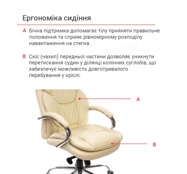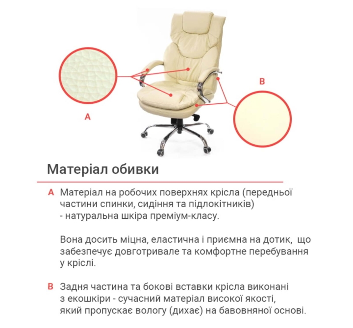 Кресло АКЛАС Флорида CH MB (Кожа LC-F Beige/PU Beige) - это офисное кресло премиум -класса, которое удовлетворяет нашими клиентами из -за его привлекательного внешнего вида, правильной эргономики и превосходного качества материалов и сборки. Эта модель займет приличное место в стильном офисе высшего менеджера и в уютной домашней обстановке. Появление кресла Флориды не оставит равнодушным для самого требовательного покупателя - элегантные изгибы и плавные линии восхищать глаза - в таком кресле сразу же захочет сесть и будет убежден в ее мягкости и удобстве. Основной особенностью этой модели являются мягкие подушки, которые создают правильные и красивые, вдумчивые, рельефные и, соответственно, удобную посадку. Высокая спинка со встроенным заголовком предназначена для пользователя высокого и выше среднего. Удобные боковые ролики обеспечивают хорошую поддержку. Мягкость сиденья и спины обеспечивается толстым слоем качественной пены, который не сжимается со временем, а на подушках используется специальная мебельная силиконовая наполнитель.Для пошива чехла на рабочих поверхностях используется натуральная кожа коровы, а именно на передней части спинки, сиденье и подлокотниках.На нерабочих поверхностях - экокожа, а именно искусственный материал на тканевой подкладке на боковых вставках, задней части спинки.