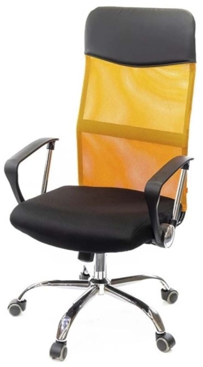 Крісло АКЛАС Гілмор СН TILT (Помаранчевий/Чорний) - вдале поєднання інноваційних матеріалів, сучасних механізмів і ергономічної форми. Одна з особливостей моделі - особливе поєднання оббивок спинки з нейлонової сітки та екокожі. Оригінальний каркас з гнутої металевої труби має правильну по ергономіці форму. Додатковим козирем даного крісла є подвійна посилена трубка спинки. Таким чином, виробник усунув «слабке» місце зламу спинки в конструкції, тим самим зробив крісло міцнішим.