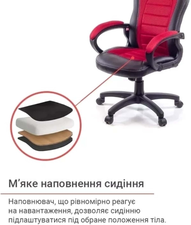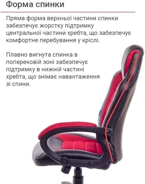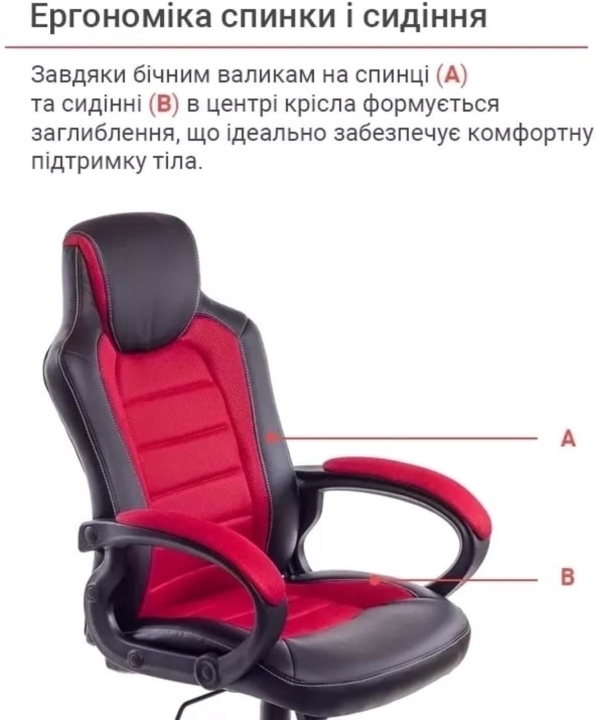 Крісло геймерське АКЛАС Астон PL TILT підліткове (Чорний PU/Червоний) - за формою схоже з кріслом в салоні авто Астон Мартін. Присівши в нього, можна легко уявити себе за кермом цієї легендарної машини. Симпатичне і яскраве, це стильне геймерське крісло притягує до себе погляди наших покупців. Ця компактна модель поєднує в собі модний дизайн, високоякісні матеріали і правильні механізми. Астон підійде для підлітків і людей невисокого зросту. Ви гідно зможе оцінити зручність і простоту в експлуатації цієї моделі. Дизайн. Зовнішнім виглядом крісло Астон підтверджує свою приналежність до лінійки "геймерських" крісел. Контрастні по виду й текстурі оббивні матеріали відмінно поєднуються між собою і гармонійно доповнюють один одного. Прострочка білою ниткою обрамляє основні деталі крісла та підкреслює його силует. Таке крісло відмінно впишеться в кімнату підлітка і також органічно виглядатиме в сучасному офісному інтер'єрі. Оббивка. Оббивка крісла Антарес комбінована. Сітчаста акрилова тканина обрамлена по зовнішньому краю сидіння і спинки якісною екошкірою чорного кольору. Розташування тканинних вставок не випадково, вони знаходяться в місцях максимального контакту з тілом. Завдяки сітчастій структурі тканина володіє відмінними "дихаючими" властивостями, добре пропускає повітря і відводить вологу - сидіти в такому кріслі буде комфортно при будь-яких температурних умовах. Екошкіра - це сучасний високотехнологічний матеріал на бавовняній основі. Він досить міцний і еластичний, приємний на дотик. Вставки з екошкіри розташовані в тих місцях, на які припадають максимальні механічні навантаження і де матеріал найшвидше зношується - на згинах, по краях сидіння. Так як екошкіра більш міцна і проста в догляді, вона довше буде залишатися в доброму стані і берегти зовнішній вигляд крісла. Механізми. У даній моделі встановлений сучасним механізм гойдання Tilt. Цей популярний механізм забезпечує можливість переривати роботу або гру приємними сеансами розслаблення, не встаючи з улюбленого крісла. Механізм регулюється під вагу користувача за допомогою спеціального гвинта під сидінням. Газліфт допоможе встановити оптимальну для вашого зросту висоту посадки. Підлокітники. У даній моделі встановлені масивні пластикові підлокітники округлої форми. М'які накладки подарують вашим рукам комфортну і надійну опору. Гарний чорний колір пластику відмінно гармонує як з оббивкою, так і з хрестовиною, що робить зовнішній вигляд крісла лаконічним і завершеним. Висота підлокітників дозволяє задвинути крісло під робочий стіл стандартної висоти, що звільняє навколишній простір. Хрестовина. Пластикова хрестовина такого ж чорного кольору виготовлена з міцного пластику.