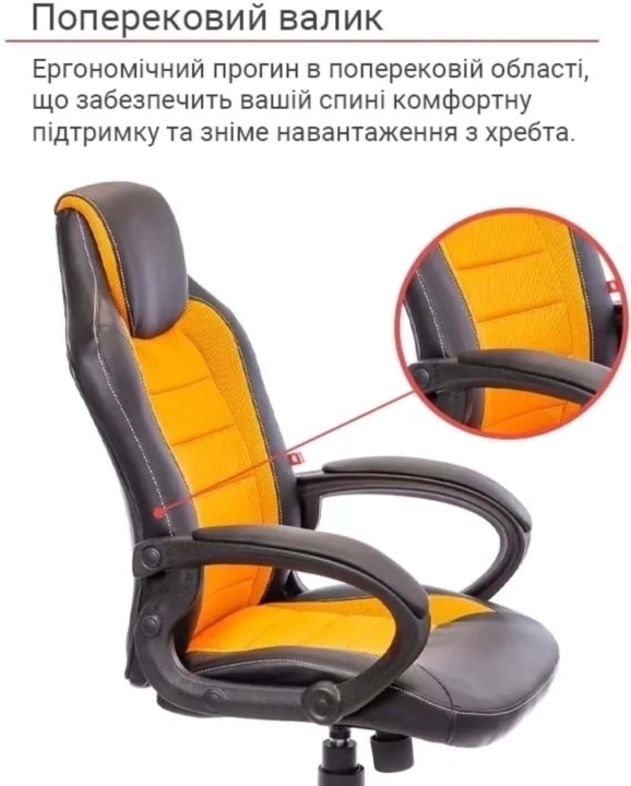 Крісло геймерське АКЛАС Астон PL TILT підліткове (Чорний PU/Помаранчевий)