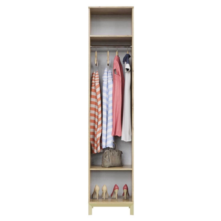Компактний вузький пенал, що може вміститись у куток чи нішу. Приемний на дотик фасад дверцяток та оригінальні металеві акценти. Він пасуватиме до Вашої кімнати.
