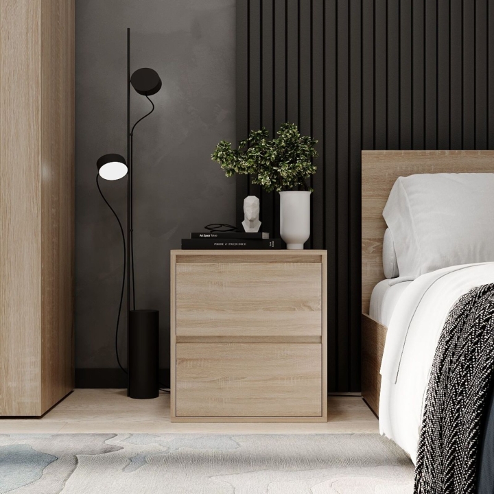 Колекція з універсальним дизайном, що пасуватиме до приміщення у будь-якому стилі. Компактна тумба з двома висувними ящиками.