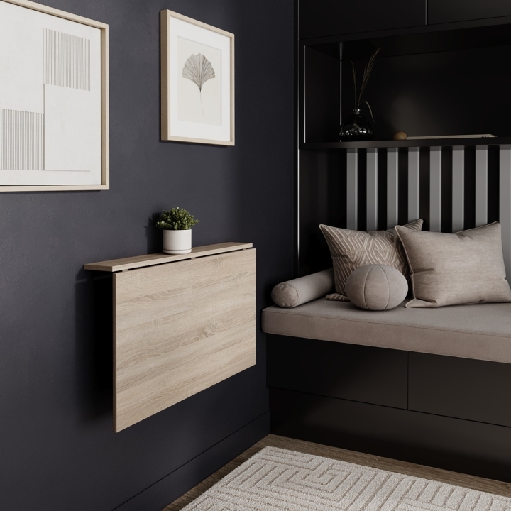 Стіл, що перетворюється в поличку. В складеному стані його ширина лише 12 см! Столик на балконі, додаткова поверхня на маленькій кухні чи в офісі - це реальність! Діапазон варіантів для використання цього компактного столу вельми широкий. Smart-меблі підкорюють користувачів своєю здатністю змінюватись та підлаштовуватись під потреби сучасної людини, що живе динамічно, що живе Smart.
