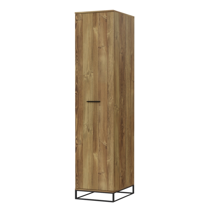 Ищете негромоздкий, но вместительный шкаф, который не занимает много места и может поместиться хоть в углу комнаты, хоть в нише? Значит, вам нужен Пенал Ascet! Компактный, узкий, установленный на прочную металлическую основу – такой предмет меблировки отлично сочетает выполнение функции хранения вещей с эстетичным дополнением интерьера и минимальными потерями полезной площади комнаты. Внутри находятся пять полок, на которых можно разместить значительное количество вещей, при этом доставать и класть их на место будет максимально удобно! Вот что значит по-настоящему функциональная и универсальная мебель! Преимущества пенала Ascet: стильный и лаконичный дизайн, идеально подходящий для таких современных интерьеров как лофт, минимализм, скандинавский, рустик, урбан, индастриал; надёжный крепкий корпус из ламинированной ДСП 16 мм толщиной; цельнометаллическое основание из трубы 10х30 мм, обеспечивающее устойчивость конструкции при любых обстоятельствах; 5 вместительных полок, закрытых распашной дверцей; удобная пластиковая ручка, служащая, к тому же, элементом сдержанного декора.
