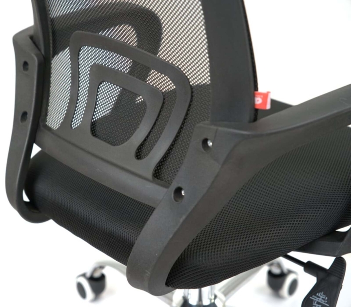 Обивка. Модель имеет комбинированную обивку: двухслойную нейлоновую ткань на сиденье и сетку нейлоновой на спинке. Оба материала «дышат» и эластичны, отлично отводят влагу в жару и хорошо держат форму. Это очень важно для обустройства рабочего места персонала. По своей структуре они схожи, только ткань дополнена подкладкой, чтобы увеличить прочность и износостойкость сиденья в процессе эксплуатации.
