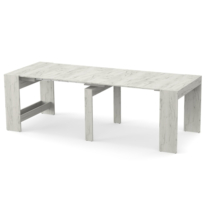 Обеденный раздвижной стол для кухни Неман ПИТОН Лайт Дуб крафт белый