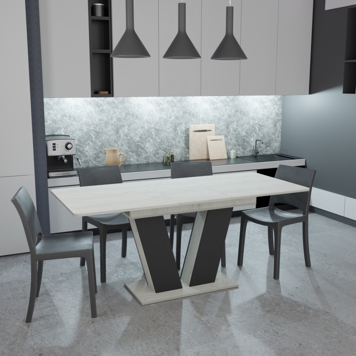 Стиль и изысканность стола подчеркиваются двумя доступными вариантами декоров: дуб крафт белый/графит и дуб крафт золотой/графит. Выберите тот, который лучше всего впишется в дизайн вашей кухни и создаст уютную атмосферу для семейных обедов и встреч с друзьями.