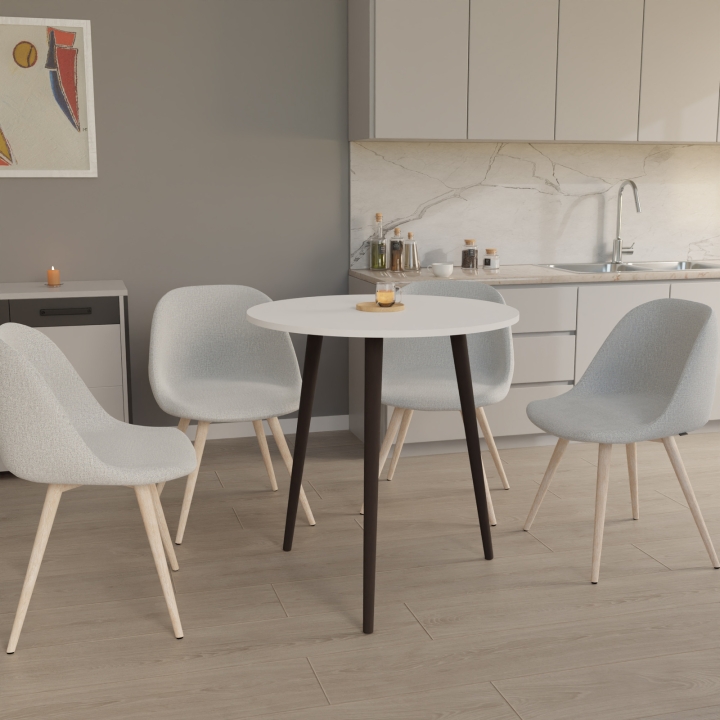 Созданный для тех, кто ценит качество и элегантность, обеденный стол "СЕТ-3" обладает габаритами, которые идеально сочетаются с компактными пространствами. С его размерами в диаметре 675 мм и высотой 746 мм, он предоставляет комфортное пространство для обедов, встреч с друзьями и семейных мероприятий.