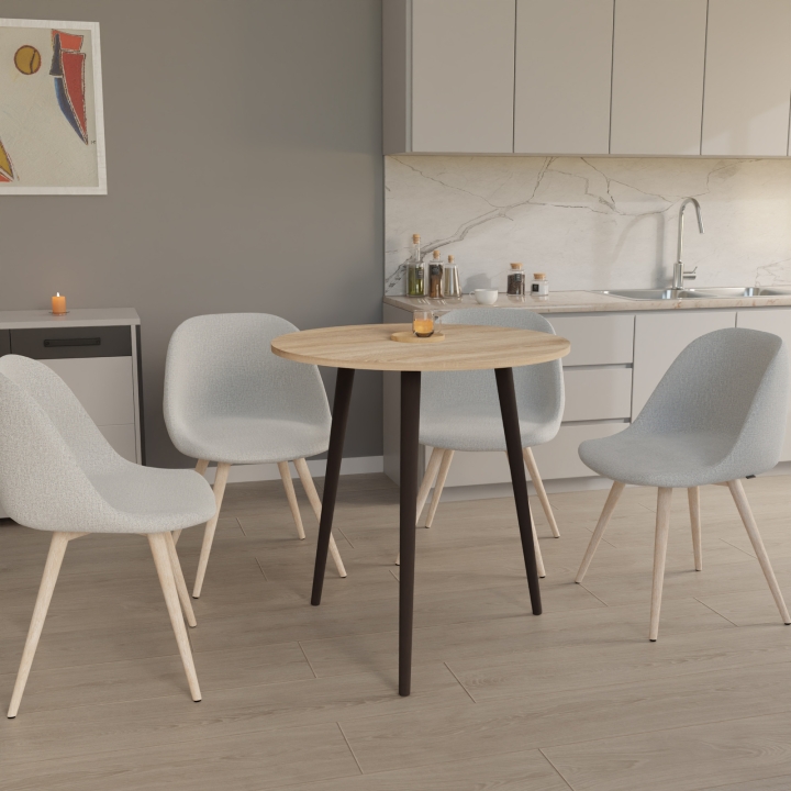 Созданный для тех, кто ценит качество и элегантность, обеденный стол "СЕТ-3" обладает габаритами, которые идеально сочетаются с компактными пространствами. С его размерами в диаметре 675 мм и высотой 746 мм, он предоставляет комфортное пространство для обедов, встреч с друзьями и семейных мероприятий.