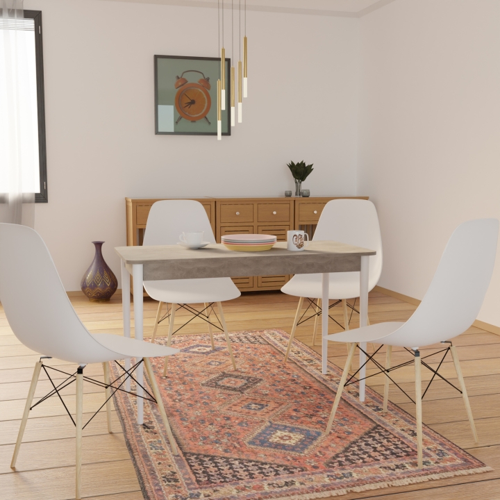 Размеры стола составляют 1180х580х750 мм, что делает его идеальным вариантом для небольших кухонь или столовых зон. Этот стол придает пространству легкости и ощущение открытости, и он идеально подходит для семейных обедов и встреч с друзьями.