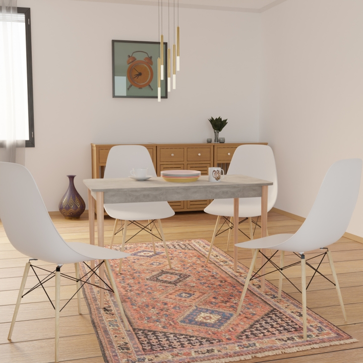 Размеры стола составляют 1180х580х750 мм, что делает его идеальным вариантом для небольших кухонь или столовых зон. Этот стол придает пространству легкости и ощущение открытости, и он идеально подходит для семейных обедов и встреч с друзьями.